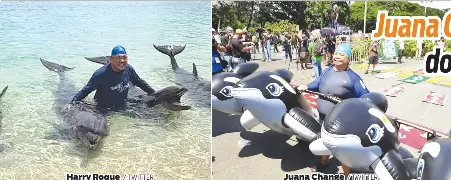 MANILA Philippines The Department of the Interior and Local Government said there was nothing wrong with presidential spokesperson Harry. Nothing wrong with Roques swim with dolphins. The artist also known as Juana Change arrived as swimsuit-wearing Harry Roque complete with dolphins at the SONAgkaisa protest at the University of the Philipines Diliman.
